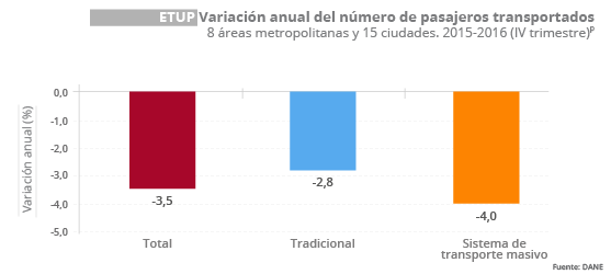 | it is currently carried out in 23 capital cities , and analyzes the municipal public transportation service provided within the urban perimeter, excluding taxi service. in the case of the medellín metro, although the survey form is not used, results are presented on the basis of monthly reports submitted by the source. information per type of vehicle and service level is collected and consolidated every month, including aspects such as fleet, number of trips, kilometers covered, passengers transported, and prevailing daily fare. |