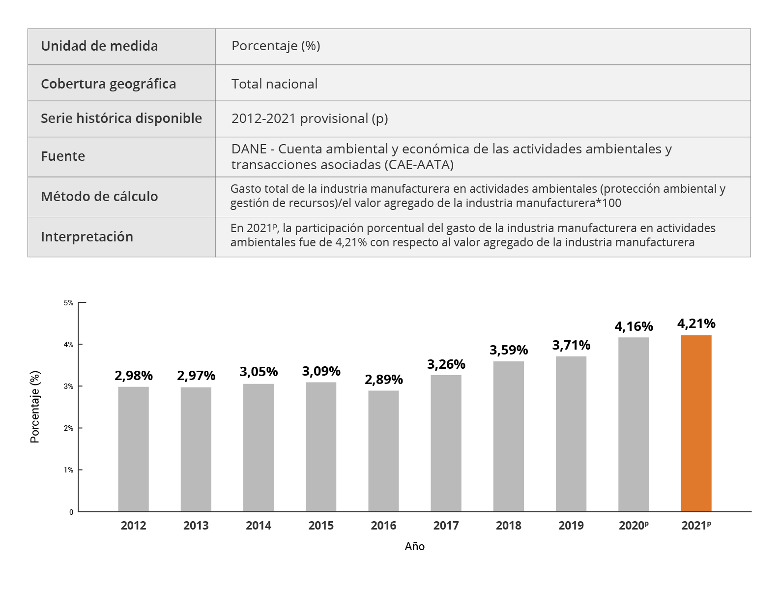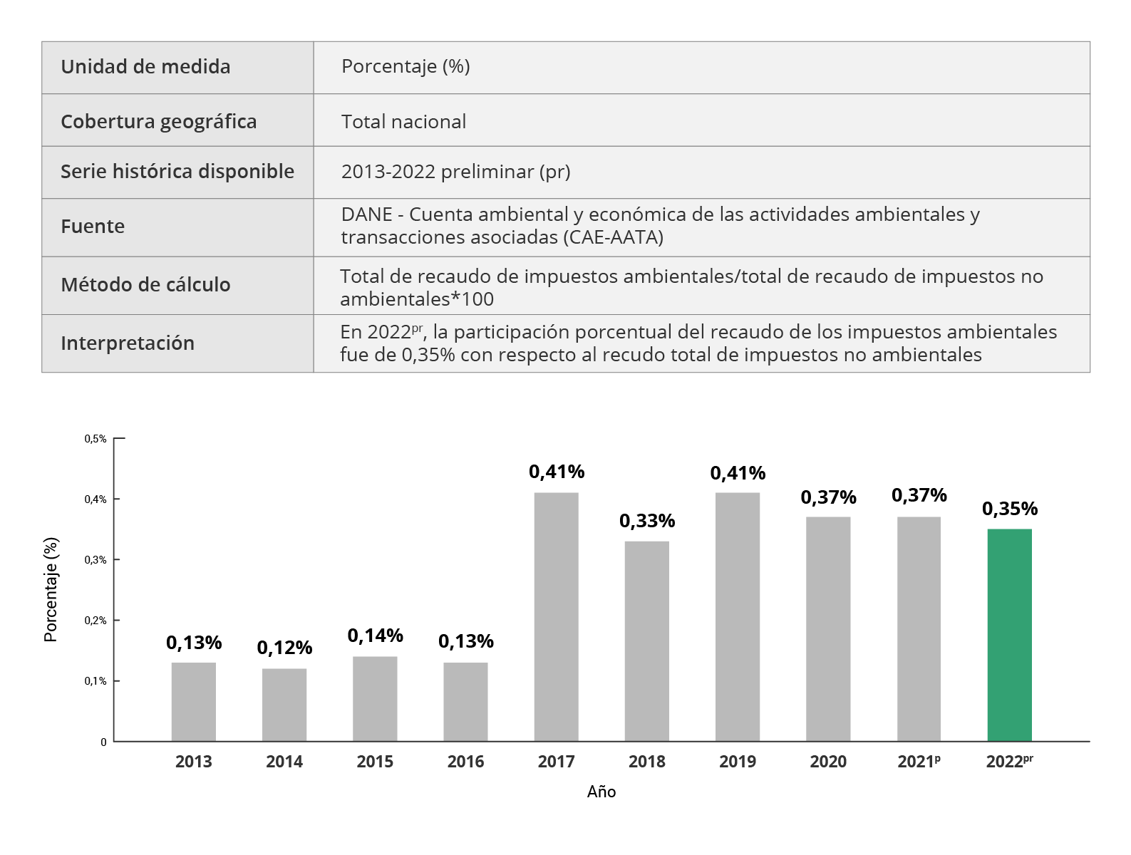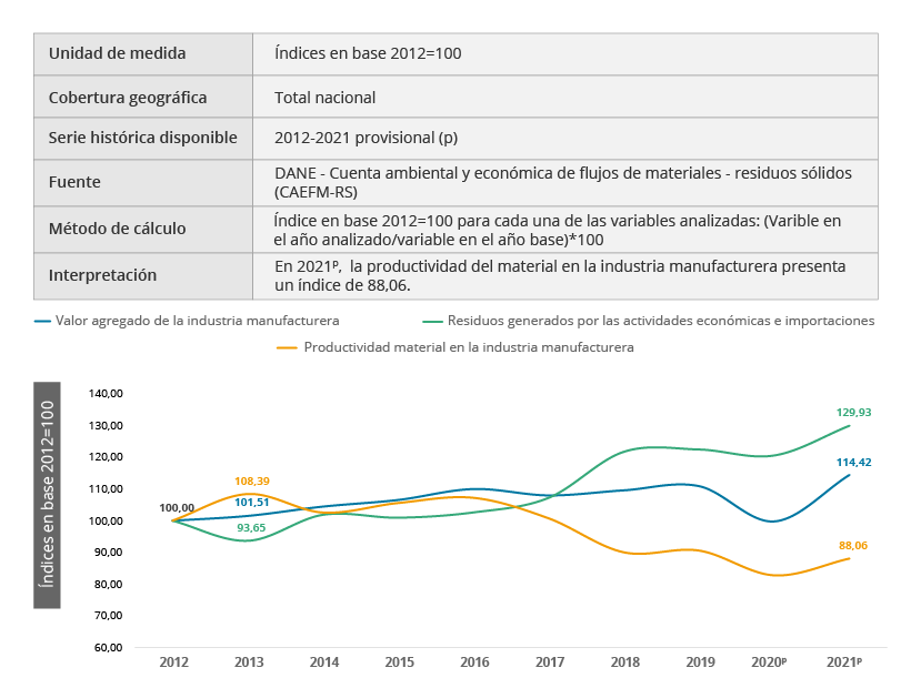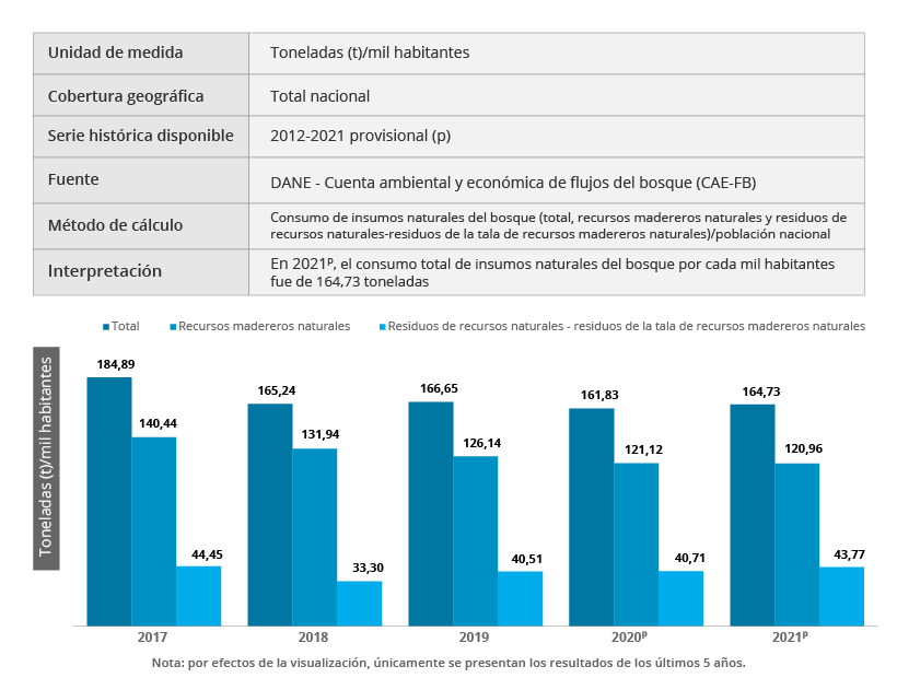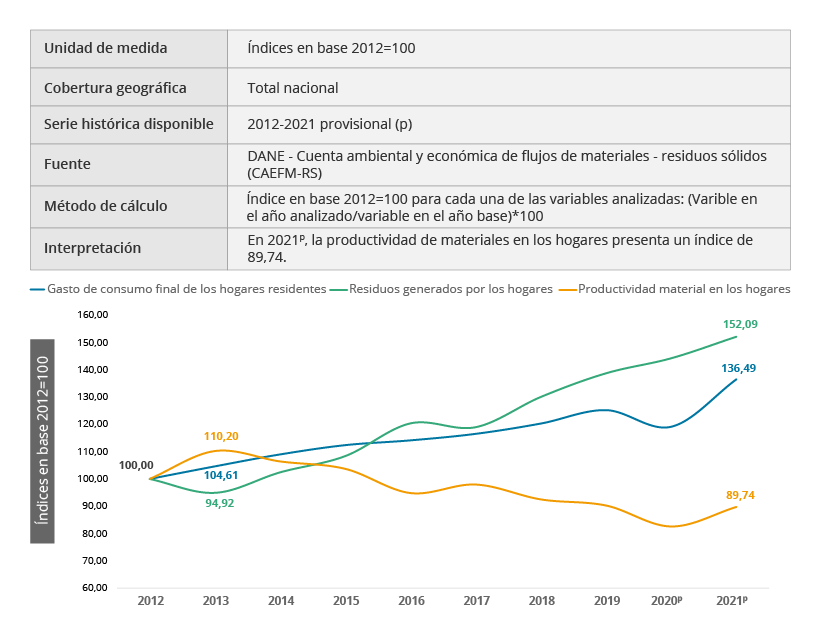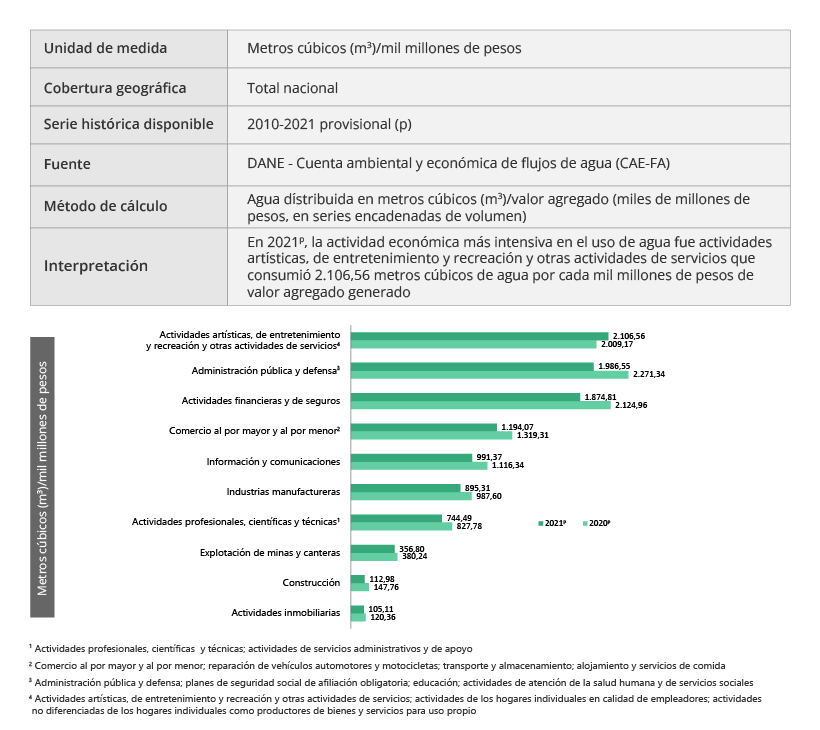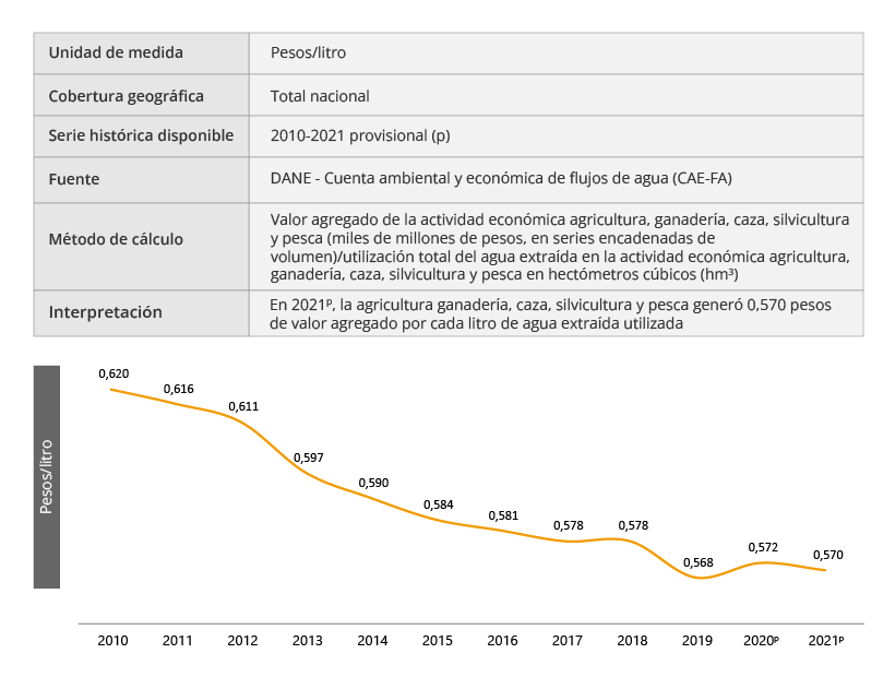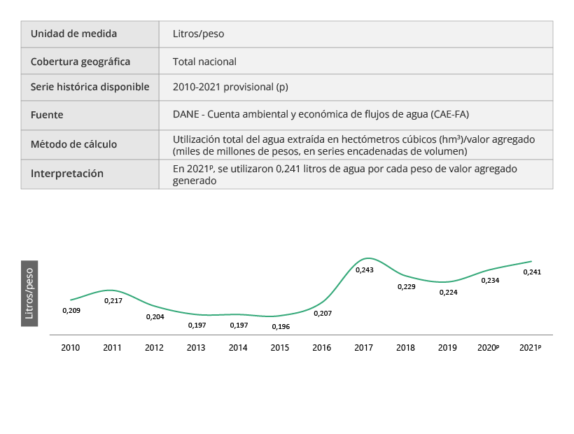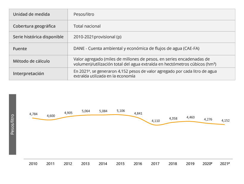Los indicadores derivados de la Cuenta satélite ambiental permiten medir las diferentes relaciones que se establecen entre el crecimiento económico y el ambiente. De esa manera se puede efectuar un seguimiento a los avances sobre el aprovechamiento eficaz y la productividad de los recursos naturales. También, se puede analizar su disponibilidad, disminución y consumo, que son herramientas fundamentales para la toma de decisiones en la formulación de política pública así como insumo de primer orden para las diferentes iniciativas nacionales e internacionales relacionadas con desarrollo sostenible.