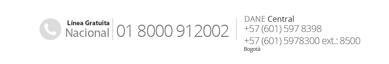 Sede principal:Código postal: 111321Apartado aéreo: 80043Correo electrónico: contacto@dane.gov.coCarrera 59 No. 26-70 Interior I - CAN - Bogotá D.C., Colombia - Suramérica